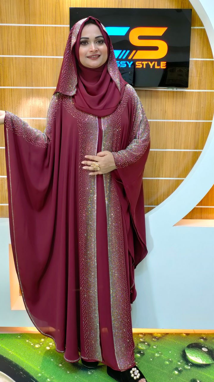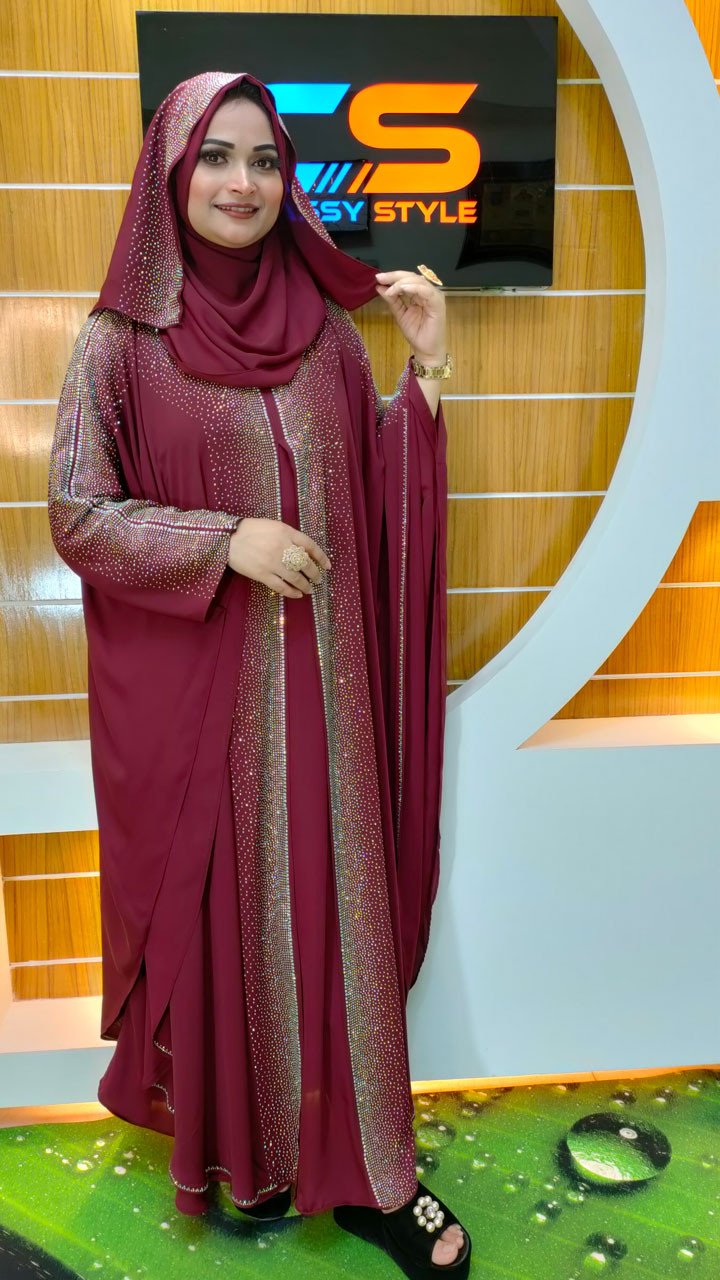 #আবায়া প্লাস হিজাব...#ফেব্রিক্স:অরজিনাল দুবাই চেরি সুপার সফট & হাই কোয়ালিটির MC স্টোন ওয়ার্ক।#সাইজ..52/54/56 রেগুলার সাইজ।এছাড়াও যে কোন সাইজ কাস্টমাইজ এর অপশন রয়েছে।